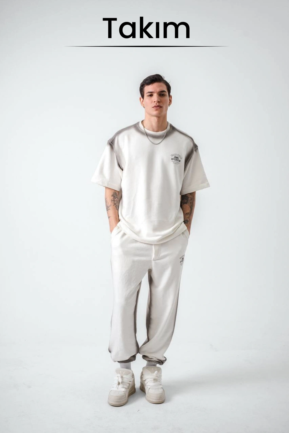 Bej Hope Nakış Kdife Patchli Oversize T-shirt