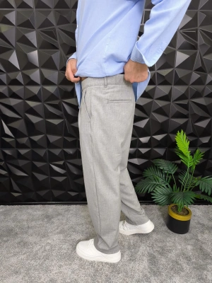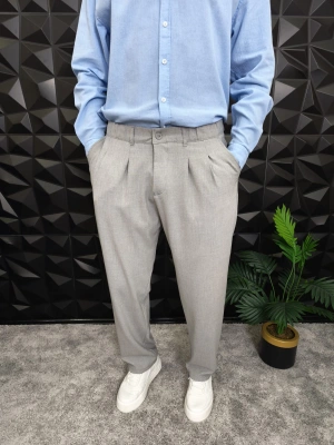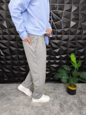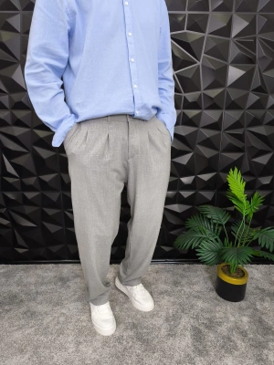 Beli Lastikli Pileli Baggy Kalıp Kumaş Pantolon Gri