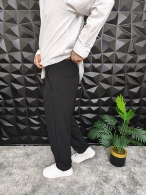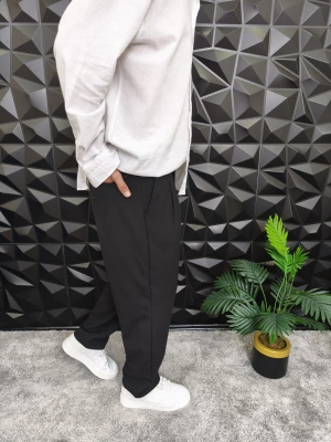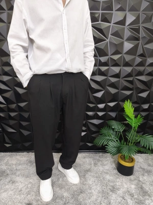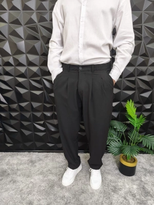 Beli Lastikli Pileli Baggy Kalıp Kumaş Pantolon Siyah