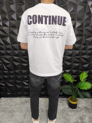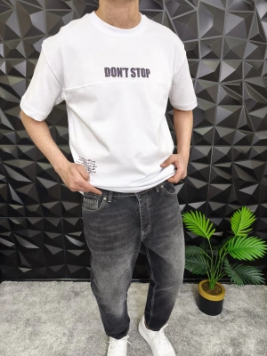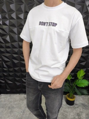 Beyaz Don't Stop Kabartmalı baskı Oversize T-Shirt