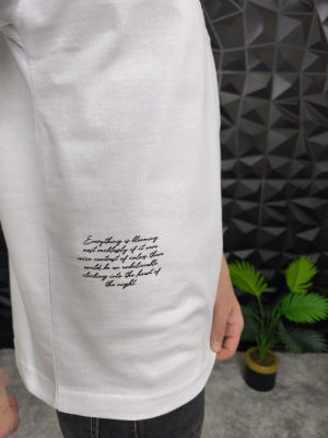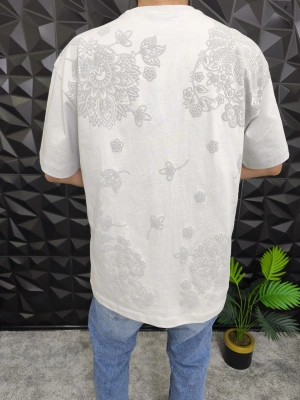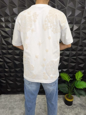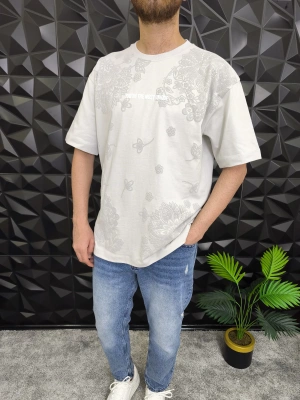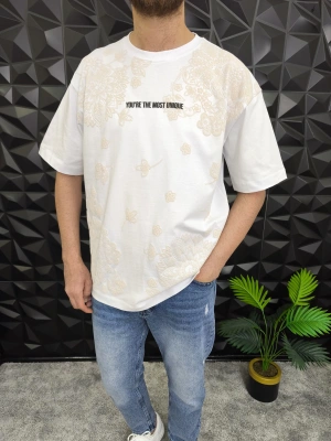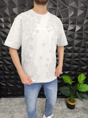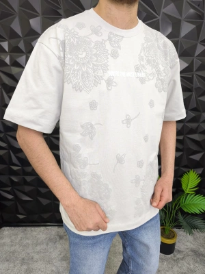Beyaz Şal Deseni Kabartmalı baskı Oversize T-Shirt