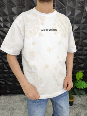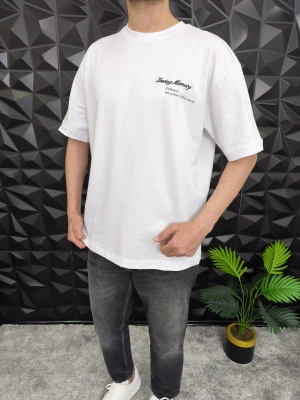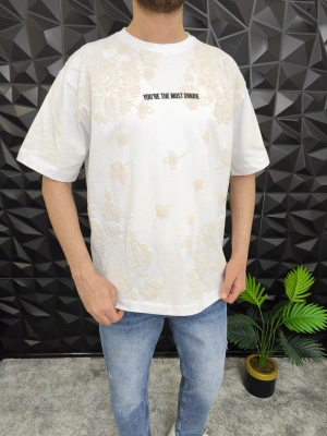 Beyaz Losting Memory Nakışlı Oversize T-shirt