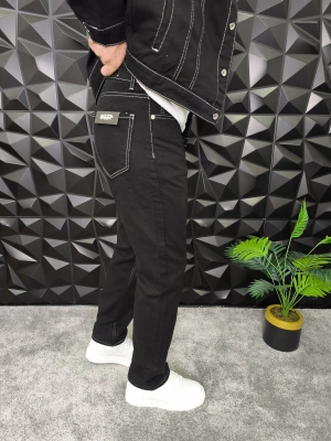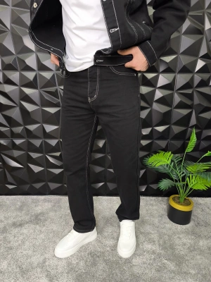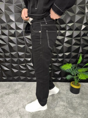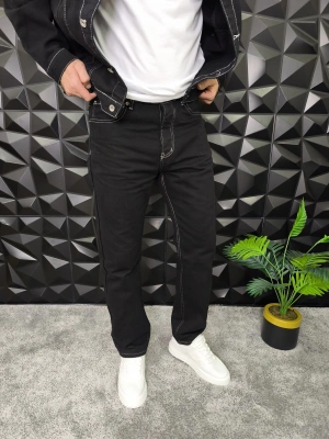 Dikiş Detaylı Siyah Basic Baggy Jean