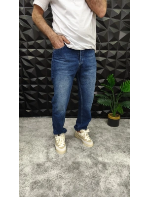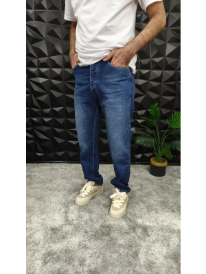 Lacivert Yıkamalı Baggy Jean