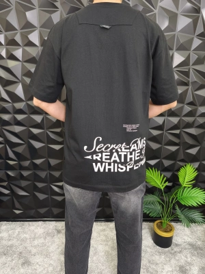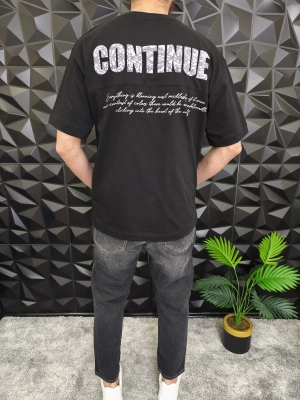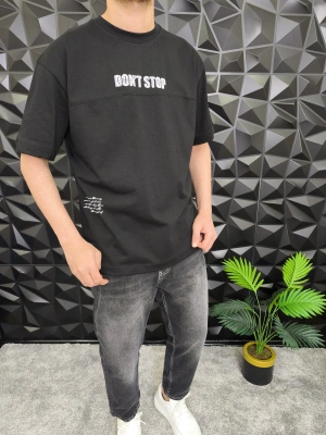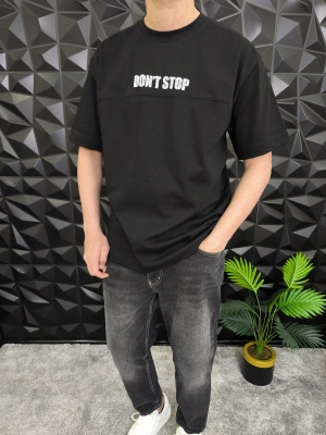 Siyah Don't Stop Kabartmalı baskı Oversize T-Shirt