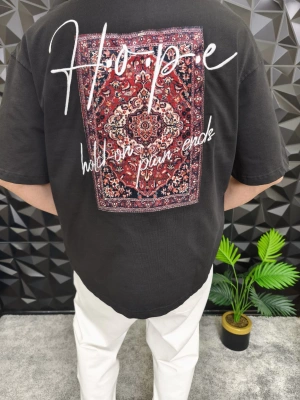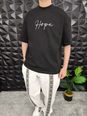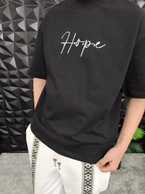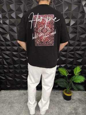 Siyah Hope Nakış Kdife Patchli Oversize T-shirt