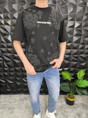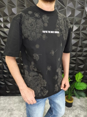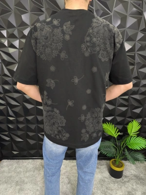 Siyah Şal Deseni Kabartmalı baskı Oversize T-Shirt