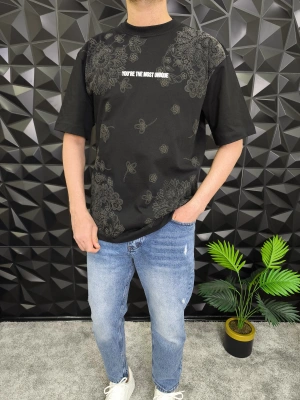 Siyah Ace Of Life süzene Nakışlı Oversize T-Shirt
