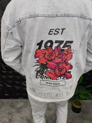 Never Break Baskılı Kot Ceket
