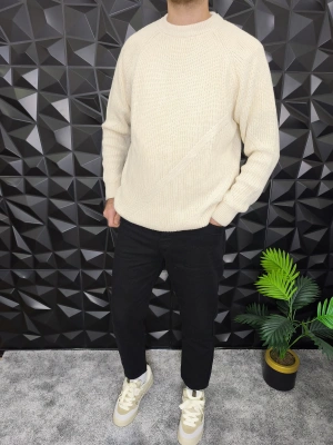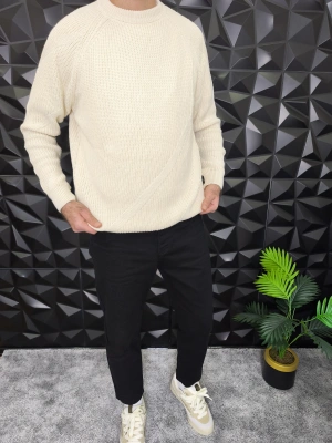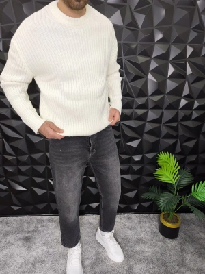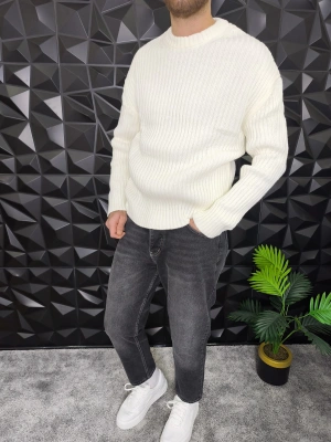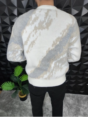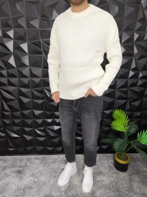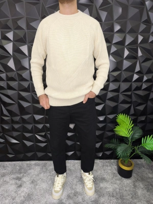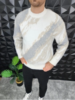 Desenli Yumuşak Dokulu Kalın Kazak Beyaz