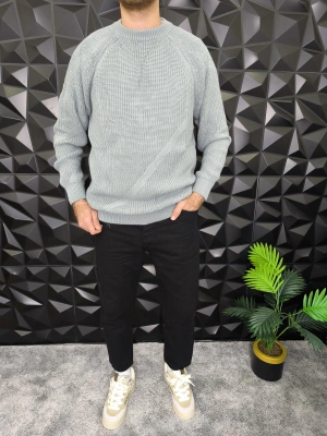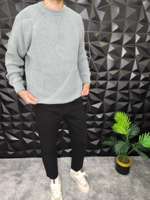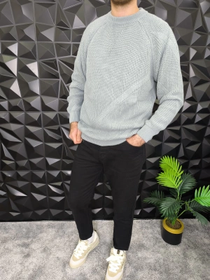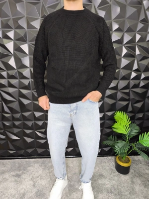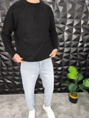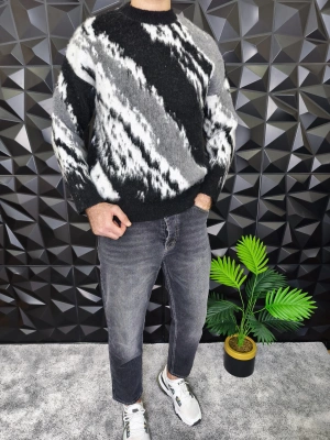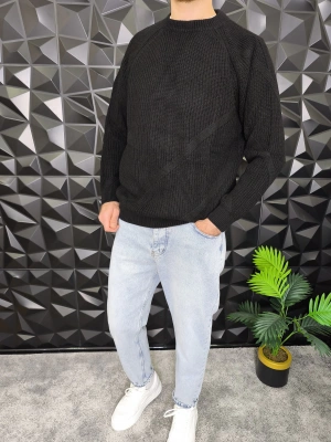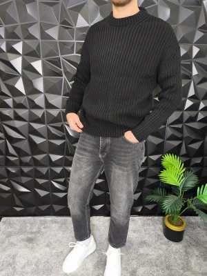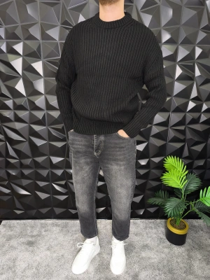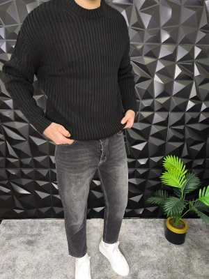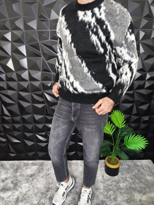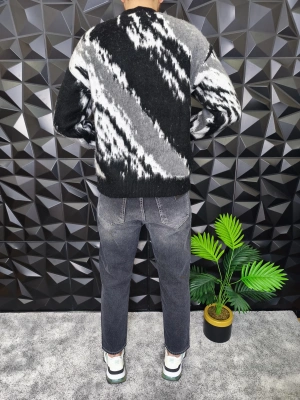 Desenli Yumuşak Dokulu Kalın Kazak Siyah
