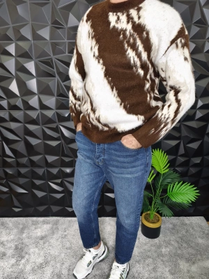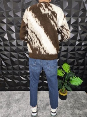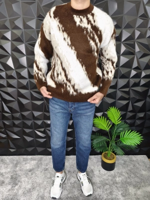 Desenli Yumuşak Dokulu Kalın Kazak Kahverengi