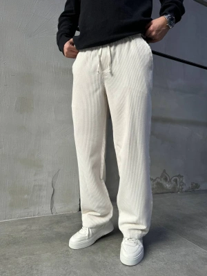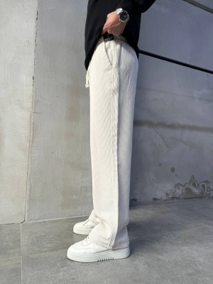 Beli Lastikli Pileli Baggy Kalıp Kumaş Pantolon Bej