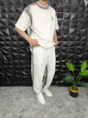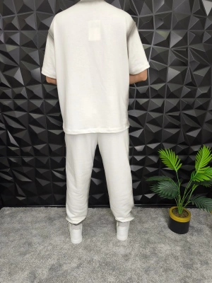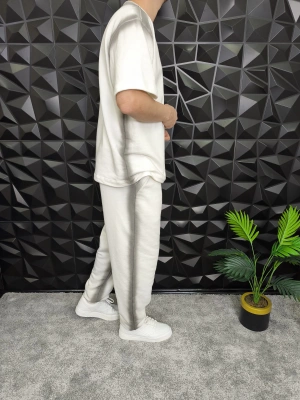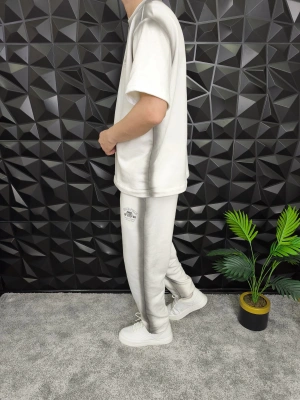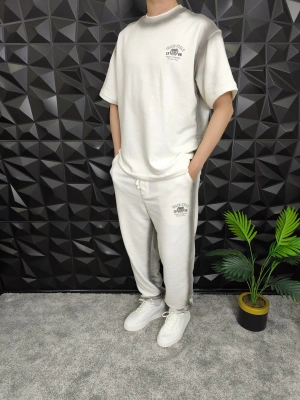 Bol Kalıp Yüksek Gramajlı Efektli Baskılı Eşofman Takım Beyaz