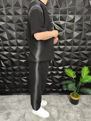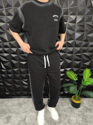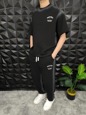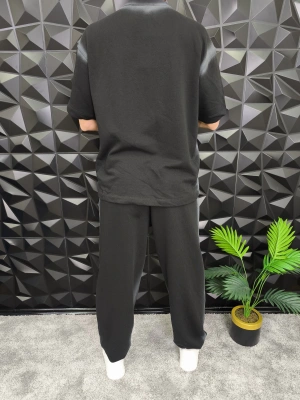 Bol Kalıp Yüksek Gramajlı Efektli Baskılı Eşofman Takım Siyah